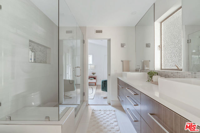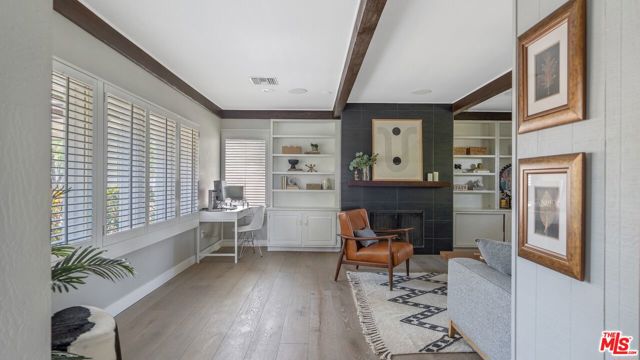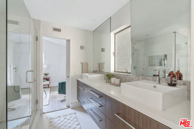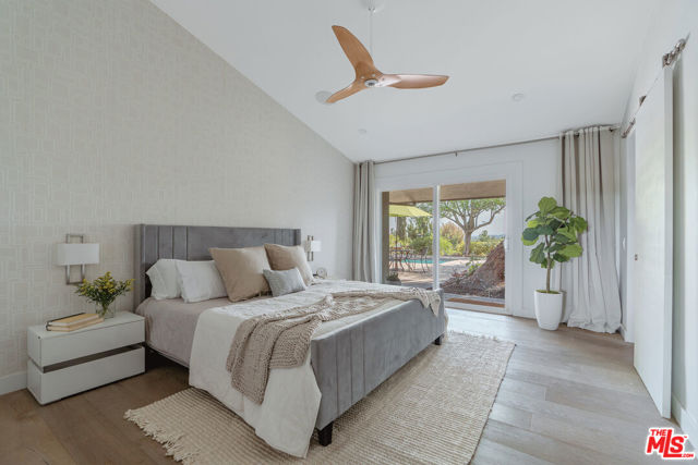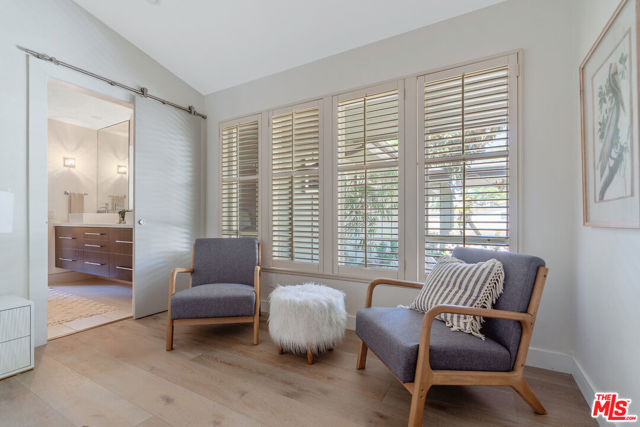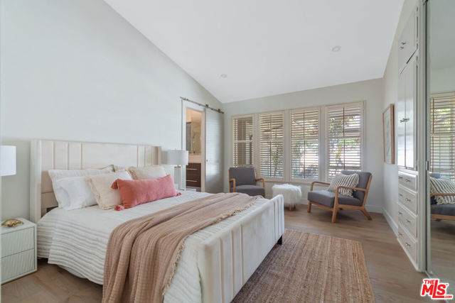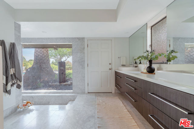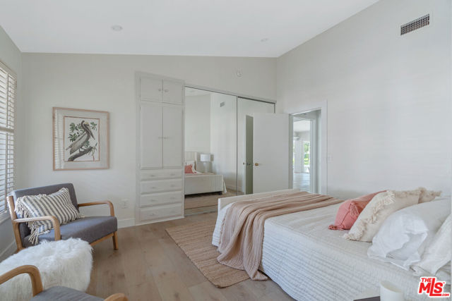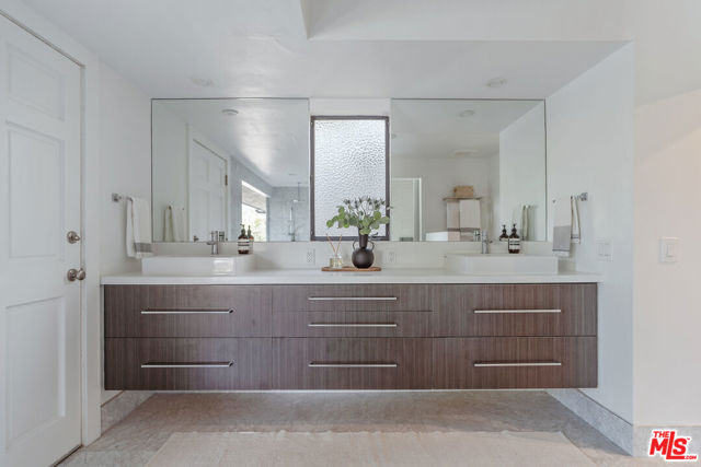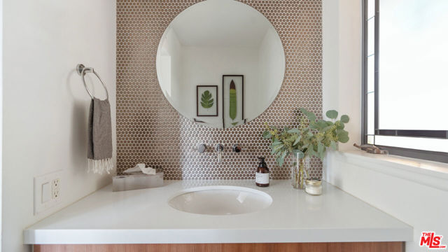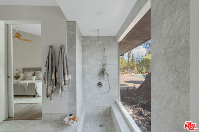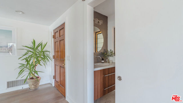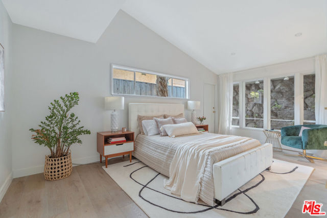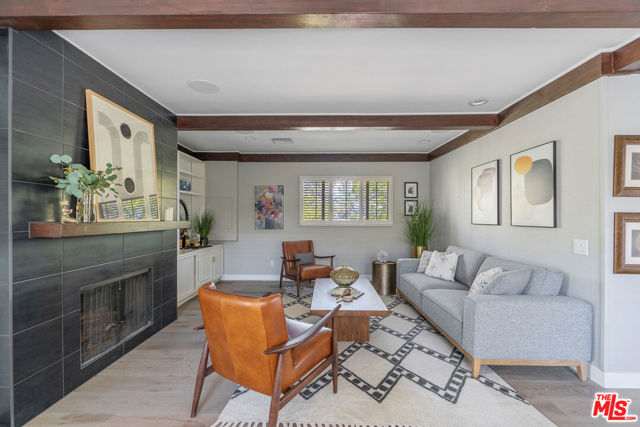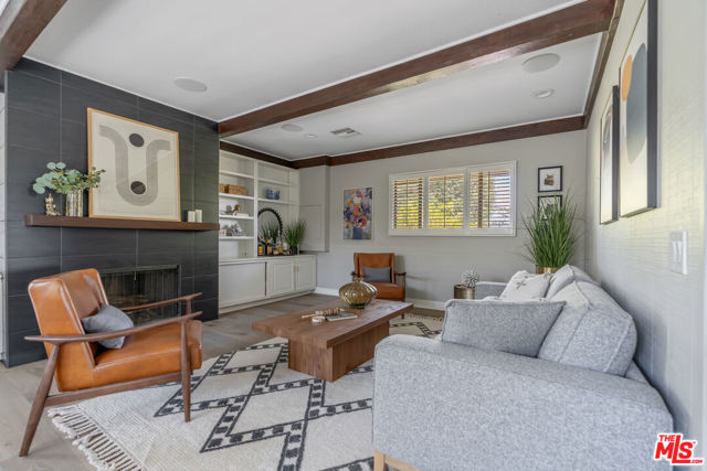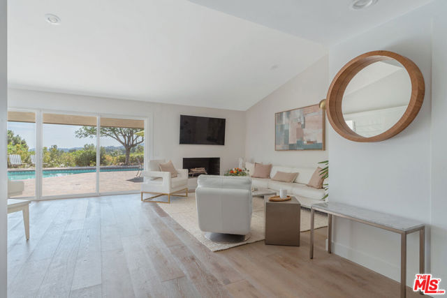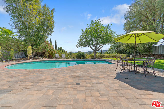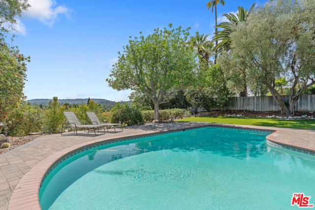 This Mid-Century stunner, in coveted Carlton Terrace, is perched near the crest of the street with sweeping valley and mountain views. Originally built in the 1950s by the neighborhood's developer for himself, this 3,000+ sq ft single-story home on a large private lot blends history, style and entertainer's appeal. Vaulted ceilings and wide plank hardwood floors frame sunlit, open living with designer details, including recessed lighting, built-in speakers and modern updates throughout. The sun-drenched kitchen shines with quartz counters, stainless appliances, custom cabinetry and a breakfast nook, while the adjoining dining room and living room boast panoramic views. The primary retreat features vaulted ceilings, a walk-in closet and a spa-like bath with dual vanities, honed marble tile and a rain shower with a picturesque view through privacy glass of the back yard. Two additional bedrooms with loads of closet space and built-ins share a sleek Jack-and-Jill bath. The family room, which could easily be converted to a 4th bedroom, is wired for surround sound, with a neighboring powder bath and large laundry room with hidden door. The outdoors of this special property are private and sprawling with a classic kidney shaped pool, ever-green yard, new paver patio and endless views. Situated on a street-to-street lot, the oversized garage offers parking for 2 cars plus additional storage. Close to all that's happening in Woodland Hills and Calabasas, with easy access to the 101 and beyond. This property is a truly modern oasis!