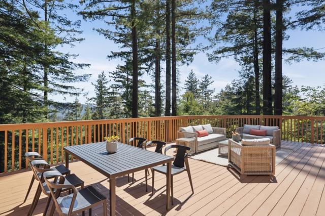 Experience the ultimate retreat, where majestic redwoods, sweeping canyon vistas, and ocean views provide a stunning backdrop for everyday living. This 3,323 sq ft custom home features 5 bedrooms and 3.5 bathrooms. The main level boasts soaring ceilings, expansive windows, and skylights that flood the space with natural light, highlighting the breathtaking scenery. The open-concept design connects the spacious living area to the kitchen, featuring Brazilian soapstone countertops, rich wood flooring, and stainless steel appliances, perfect for entertaining or relaxing. An adjoining family room offers more space to unwind. Head downstairs to access the expansive deck, versatile bedrooms, and flexible spaces. Outdoor living takes center stage as you step onto the oversized deck, soak in the hot tub under a canopy of stars, or explore the meticulously terraced yard, offering space to garden, relax, or let your animals roam free. Ideally located, a short walk to miles of open space trails,10 minutes to Hwy 280 with easy access to SFO, Silicon Valley, and the Half Moon Bay coast, this home offers the perfect blend of serenity and convenience. Come experience the lifestyle you've been dreaming of, surrounded by nature, tranquility, and the welcoming community of Kings Mountain.