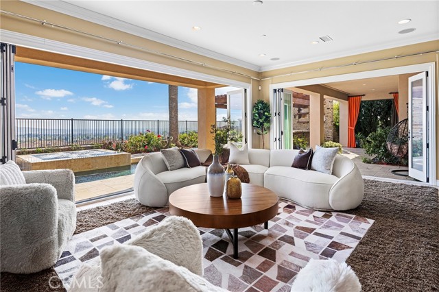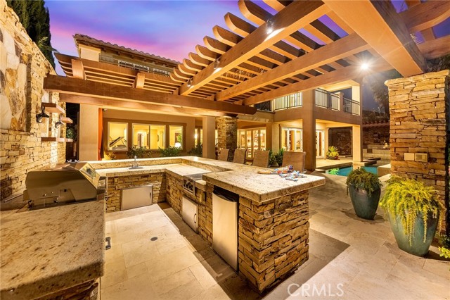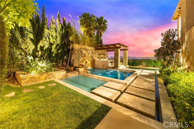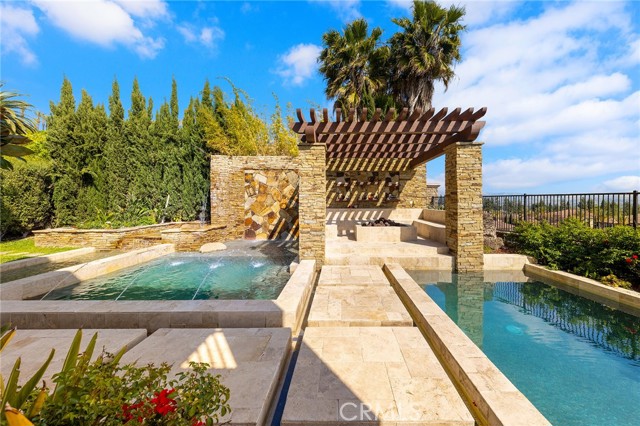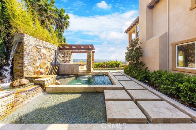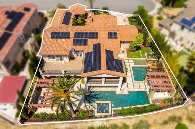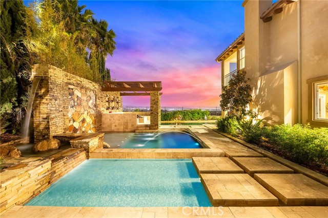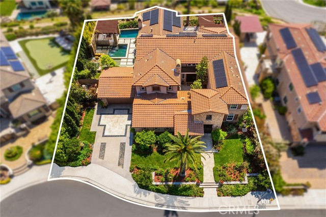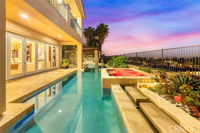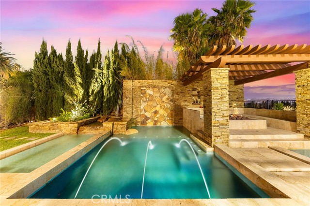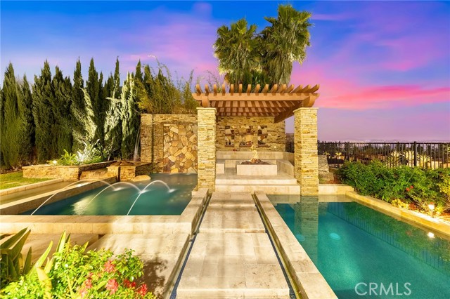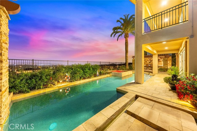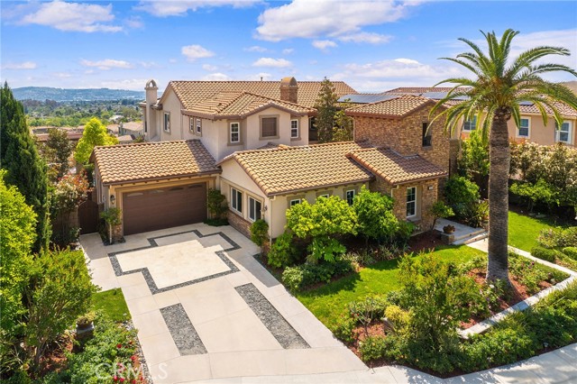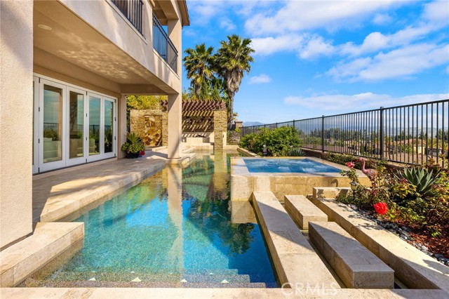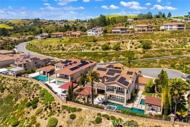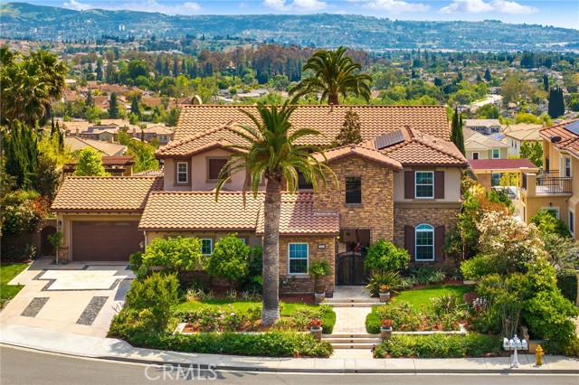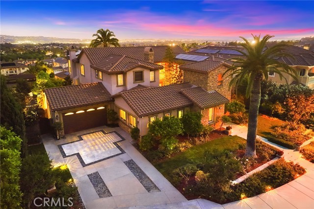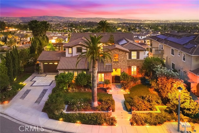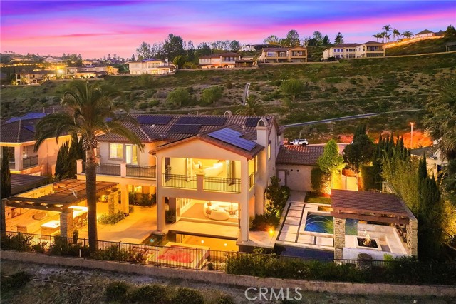 Breathtaking panoramic views estate located on an elevated cul-de-sac street in the prestigious Amalfi Hills community!! This extraordinary home offers forever unobstructed views of Catalina Island, stunning city lights, twinkling Sunsets, Rolling Hills & Disneyland fireworks! The home includes over $1.3 million in builder and owner upgrades. Smart home automation, whole house water softening system and 40 paid off solar panels. Dual kitchens, including custom open chefs quality kitchen with spacious center island, granite counters, Built-In refrigerator, 6 Burner Gas Cooktop, Walk-in Pantry. It's perfect for both everyday living and entertaining. The primary suite offers a private retreat, complete with a luxe spa-like bathroom, spacious walk-in closet, and direct access to the beautiful balcony. A separate entry one bedroom with a full bath for a live-in nanny. Professional designed resort style backyard is perfect for outdoor entertaining with a oversized sparkling pool, fireplace, outdoor kitchen and barbecue, custom decking and waterfalls and tranquil sitting areas with forever views. Single loaded street offers complete privacy with no neighbors in front or behind. Some of the best schools in North County include Yorba Linda High School. Welcome your forever dream home!