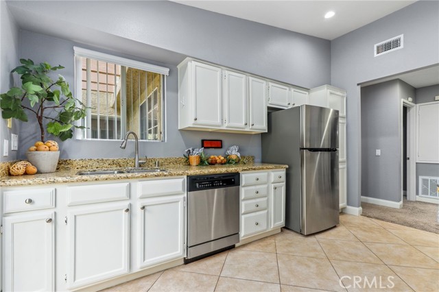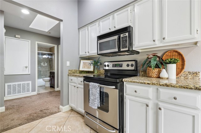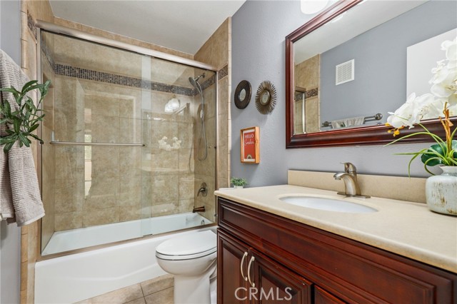 Welcome to The Hills in Yorba Linda! This light-filled upper-level condo combines treetop serenity with easy everyday living. The front door opens to a soaring living room with vaulted ceilings, a fireplace, and a door to a rare wraparound balcony—ideal for morning coffee and breezy evenings. A defined dining area bridges the living room and kitchen, where tile flooring, granite counters, stainless appliances, and a second balcony access make cooking and entertaining a breeze. The thoughtful layout offers two bedrooms and two baths, including a private primary suite with vaulted ceilings, a skylight with remote shade, a large walk-in closet with upgraded organizer, and an ensuite ¾ bath. The exceptionally spacious secondary bedroom sits near a full hall bath. Your own laundry/utility room is conveniently located off the balcony, and yes—ALL appliances are included. Abundant windows pull in natural light and frame the natural beauty of the surrounding Yorba Linda hillsides. Recent upgrades include a fully replaced HVAC system within the last two years. Parking is simple with two reserved covered spaces plus ample guest parking. Community amenities include multiple pools, sport courts, and playgrounds. Tucked away from the bustle yet close to shopping and dining at Savi Ranch, with nearby parks, trails, walkways, and bike paths, and quick access to the 241 Toll Road for commutes to Irvine and central Orange County. Move-in ready, well-located, and wonderfully livable—5065 Twilight Canyon Rd #35G has it all.
