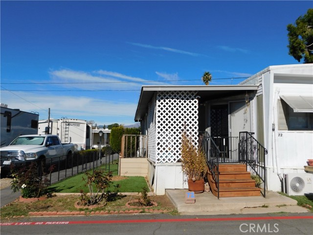 ~Newly updated single wide situated in Yucaipa’s desirable 55+ community Skyline Village!~Low space rent! Only $347!~Recent upgrades include brand new water heater in August 2025, new vinyl flooring throughout in 2024, new ductless heating and air unit (mini split) in 2024, and metal roof re-coated in 2022!~Bright and welcoming living room, open to kitchen and spacious dining area~Kitchen with included fridge and new microwave, with plenty of storage space plus updated cabinet hardware!~Full bath with tub/shower and updated vanity!~Queen size primary bedroom with new blinds and lots of built-ins!~Bonus room for storage, hobby room, gym, etc, connects to converted 2nd bedroom (currently being used as a workshop)!~2nd bedroom with electricity recently ran to it, and updated panel box to accommodate, is also queen size, with dual pane window and huge amount of closet space!~Laundry area conveniently located directly across the street from home!~Low maintenance yard, recently fenced, with artificial turf added in 2024!~Large tree in front yard recently removed to make room for carport!~Shed in backyard~Gated front porch with privacy and re-built front steps in 2024!***Call for a tour today, you will definitely be impressed!***