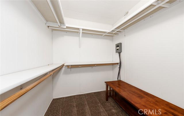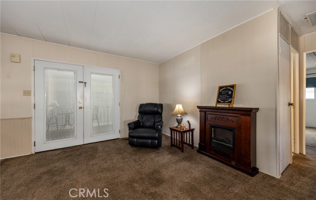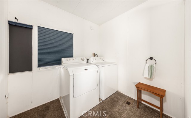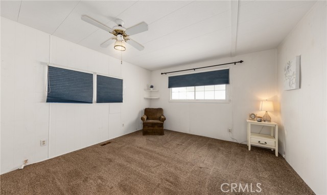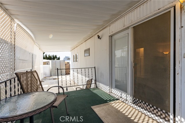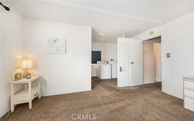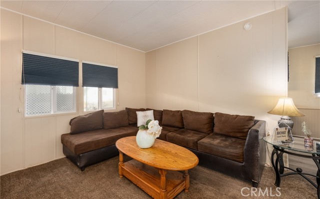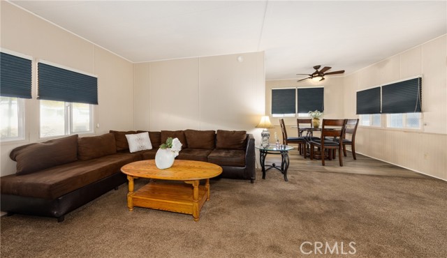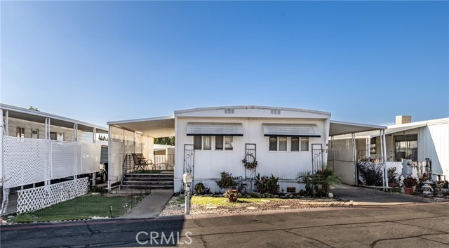 WELCOME HOME! This QUAINT & SPACIOUS PROPERTY has been THOUGHTFULLY CUSTOMIZED by the seller. The paneling throughout has been painted offering a brighter and upgraded interior. The home contains dual paned windows, a 2 year old HVAC offering central heat and air which adds to your monthly cost savings. A new main plumbing line was also installed a year ago. As you enter, a nice sized living room welcomes you. The kitchen and dining areas flow seamlessly providing a pleasing floorplan. While sitting at the dining room table, the newer windows provide ample natural light. The bathroom has a bowl sink adding an upgraded style to the space. This home was previously a two bedroom home, however, the seller has customized the bedroom, providing a single primary suite that offers ample space, a walk in closet with an indoor laundry area as well. The covered carport provides covered parking, there are 3 storage sheds that stay with this property (1 storage shed pas power for a workshop) and the covered front porch provides extra living space as well outside. The current space rent is $416.31 which includes water, trash, sewer and access to the community pool/spa and clubhouse. If you are looking for a spacious 1 bedroom home, please come see this home in person!