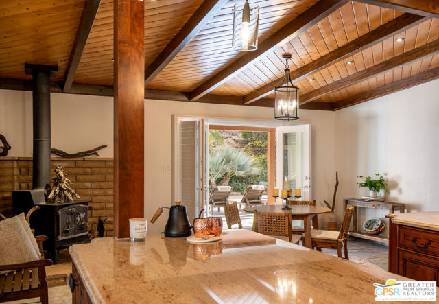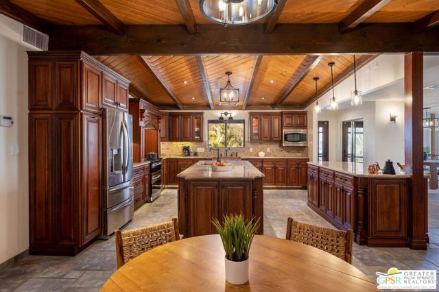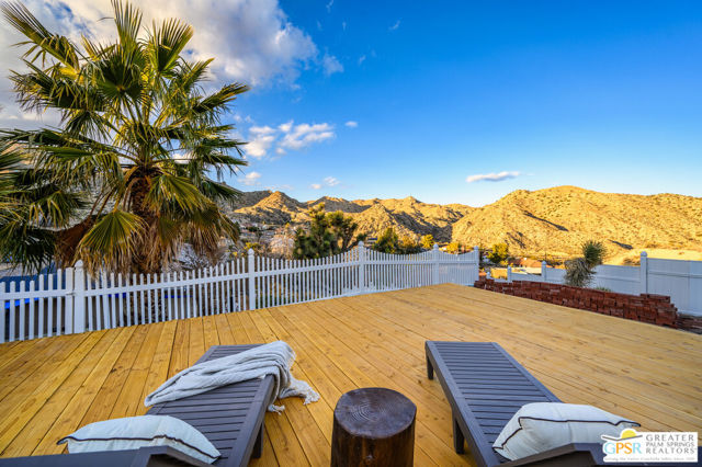 ATTENTION Buyers, The Koi pond has been evaluated and confirmed it can be converted to a pool. Ready to assist in buy down of rates for the right offer. Discover Ridge Oasis, a stunning 3-bedroom, 2.5-bath fully-furnished retreat set against the hills of Yucca Valley's serene Country Club neighborhood. Perfect as a primary residence, a vacation escape, or a high-potential investment, this fully furnished home blends desert serenity with modern elegance, just minutes from Joshua Tree National Park. Inside, the open floor plan is bright and spacious, with high ceilings and clean modern finishes. The centerpiece is a gourmet kitchen, outfitted with dual islands, two sinks, and premium appliances; it's a chef's dream, perfect for family gatherings or entertaining. Enjoy morning coffee at the breakfast nook or host dinner parties in the elegant dining room, with seating for eight, complete with a cozy reading corner overlooking the expansive living area. The living room, bathed in natural light, offers breathtaking desert views through its expansive windows. Avast stone fireplace completes the space, creating a seamless connection to nature. The primary suite is a true haven, offering a sitting area, a spa-inspired ensuite with dual vanities, and walk-out doors to a serene patio - perfect for starlit evenings. Two guest bedrooms share a spacious bathroom with dual zones for privacy. A powder room and full laundry room round out the interior layout. Outside, the gated property invites exploration. Wonder paths lined with palm and Joshua trees, relax by the exotic Japanese Koi pond (which includes complete pool infrastructure for conversion), or stargaze from the upper deck's sweeping views. The hot tub and spacious entertainment patio make it easy to host and unwind. The home also comes with a three-car garage, a large custom shed, and an upgraded solar system (keeping utility costs low).Just a short drive from local dining, shopping, and hiking, Ridge Oasis offers seclusion and accessibility. Schedule your tour today to claim this desert masterpiece as your forever home!