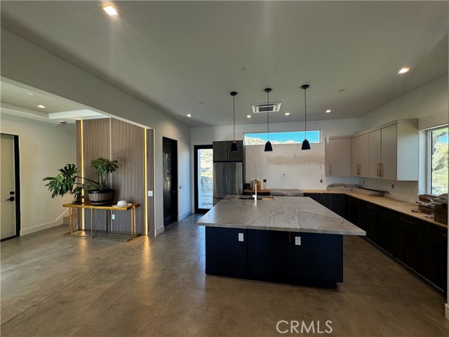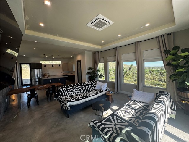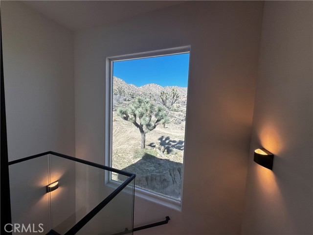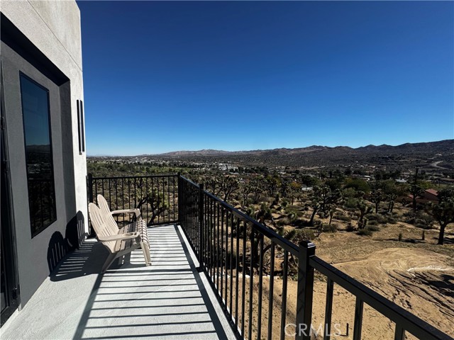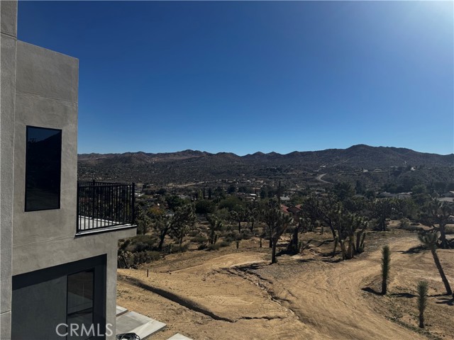 Brand-New Modern Luxury Home in the Coveted Country Club Area of Yucca Valley! Perched above the golf course on a rare 1.25-acre lot, this stunning contemporary home is currently under construction and expected to be completed in early 2026. Designed with modern sophistication and high-end finishes throughout, this property offers exceptional quality, privacy, and panoramic views of Mt. San Jacinto and the surrounding desert landscape. Step through the impressive tinted tempered glass 8-ft pivot door into an open-concept living space featuring 10-ft walls, coffered ceilings with LED lighting, and 8-ft folding patio doors that create seamless indoor-outdoor flow. The chef’s kitchen boasts a massive 7’x7’ quartz island, full quartz slab backsplash, Cosmos stainless steel appliances, custom soft-close cabinetry, and LED-lit floating shelves. Additional highlights include polished concrete and engineered wood floors, black metal and glass stair railings, two 60†electric fireplaces, and zoned AC/heat pumps for every room. Each bedroom offers its own spa-style bathroom with LED mirrors, electric toilets, and designer tile showers. The luxurious primary suite features a sitting area, large walk-in closet, and private balcony with sweeping desert views. Energy efficient touches include solar readiness with battery connection, foam-insulated roofing, and a 50-gallon electric heat pump water heater. Outside, enjoy nearly 100 protected Joshua Trees, a circular driveway, a new septic system, and a 20’x30’ concrete pad ideal for a future pool, fire pit, or Ramada. A rare opportunity to own a cutting-edge, all-electric modern masterpiece in one of Yucca Valley’s most desirable neighborhoods—just steps from golf, hiking trails, and the country club!