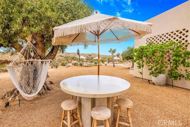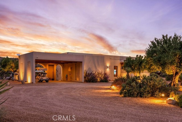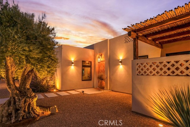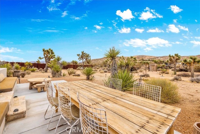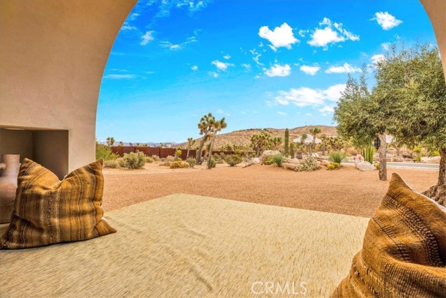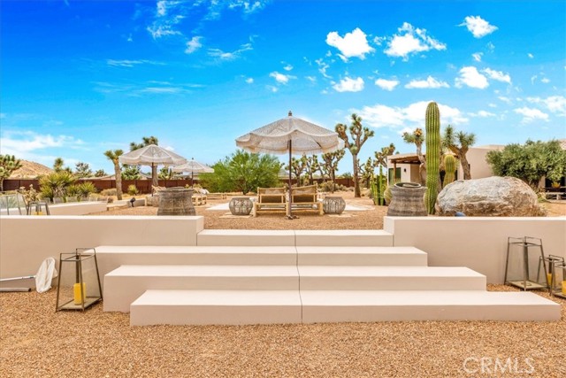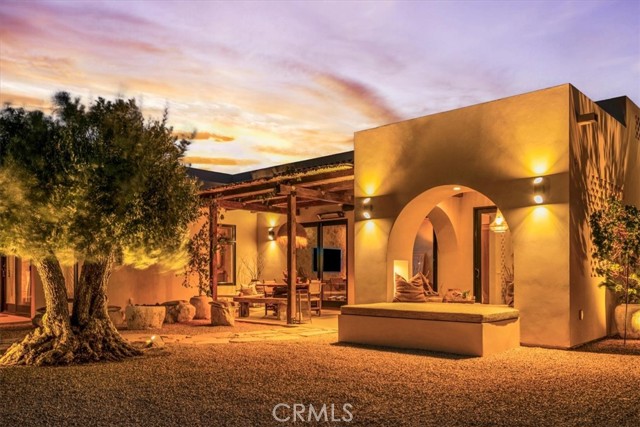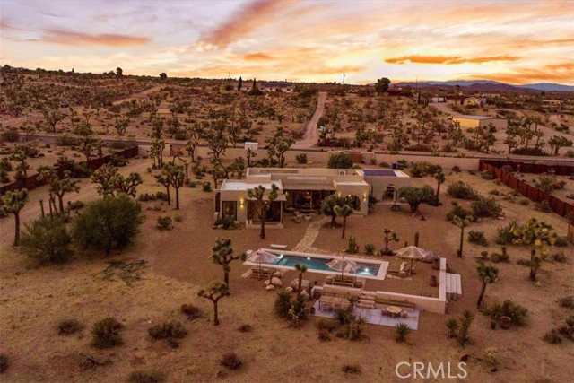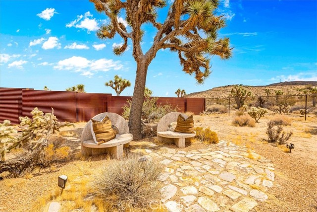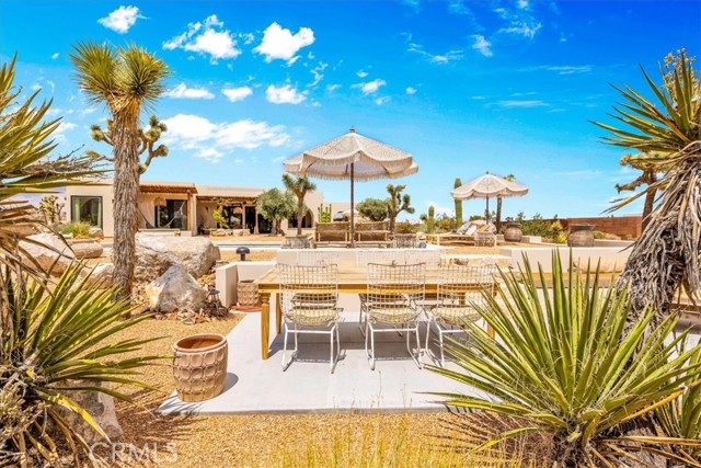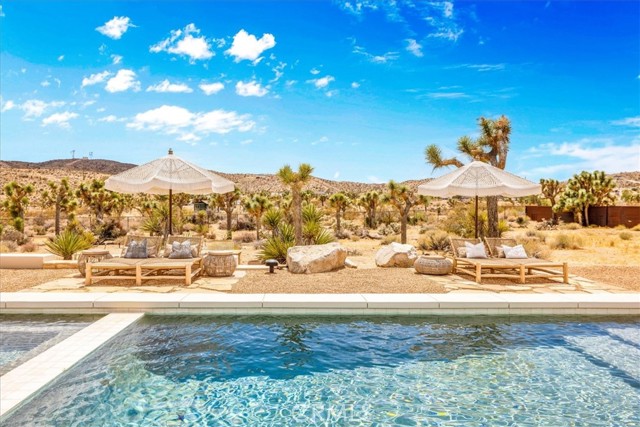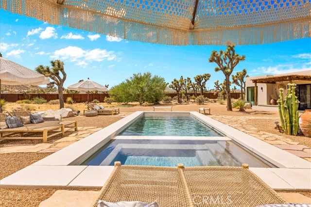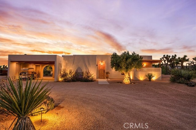 Step into your own private sanctuary in the heart of Yucca Valley—a stunning furnished Moroccan desert-inspired retreat that blends modern luxury with timeless design. This 2-bedroom, 2-bathroom architectural gem spans 1,363 square feet and sits on a serene 2.3-acre lot, offering total privacy and an unmatched desert living experience. From the moment you enter through the electric gate, you’re welcomed into a fully fenced oasis surrounded by native desert landscaping and curated stone walkways. Inside, you'll find sleek concrete floors, custom stone accents, built-ins, and thoughtfully designed living spaces that open seamlessly to the outdoors. The home features private patios, a tranquil inground heated salt water pool and spa, an outdoor fire pit, and shaded lounging areas—perfect for entertaining or unwinding under the stars. New modern architecture is complemented by mini splits for year-round comfort, while a carport adds function and more outdoor opportunities. This is more than just a home—it's a destination. Ideal as a luxury vacation getaway, high-end rental, or full-time desert retreat. Don’t miss the chance to own this truly one-of-a-kind property where style, privacy, and natural beauty meet.