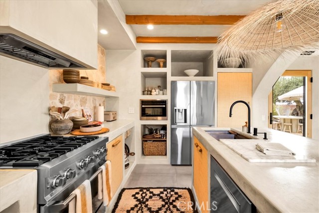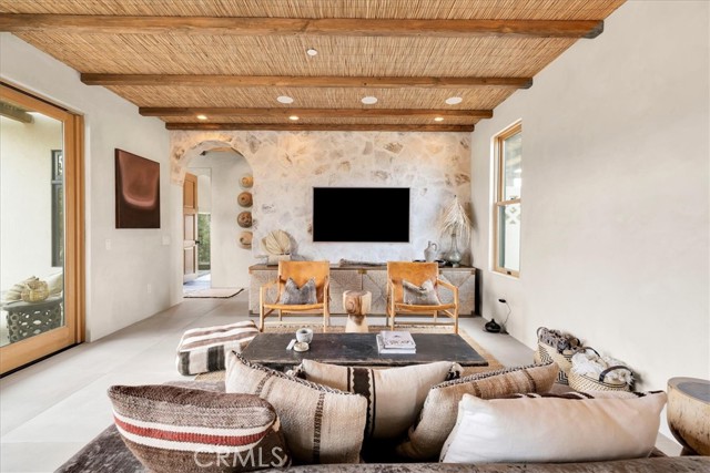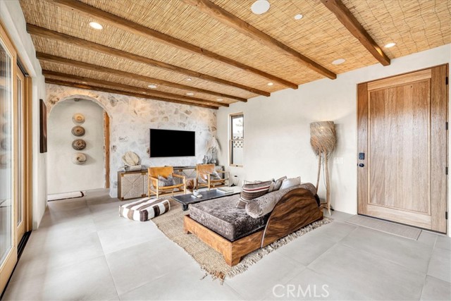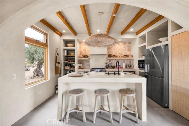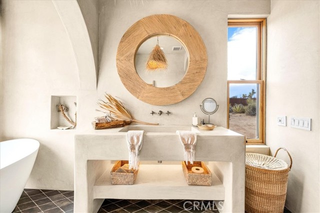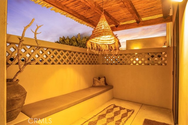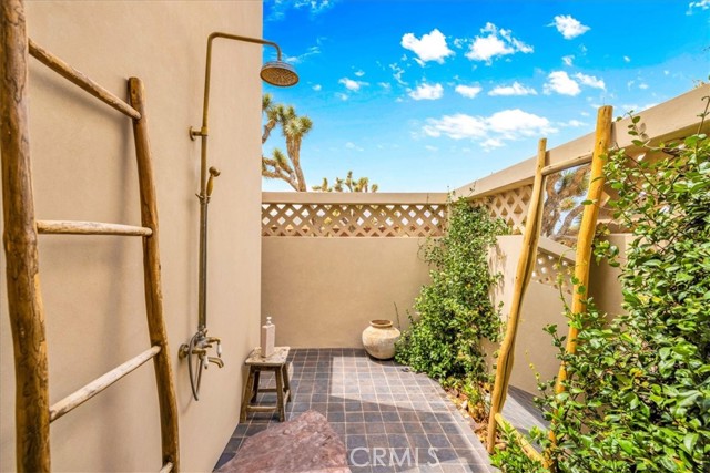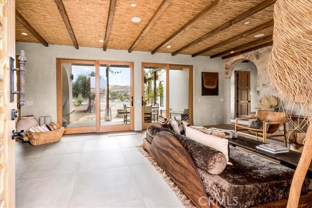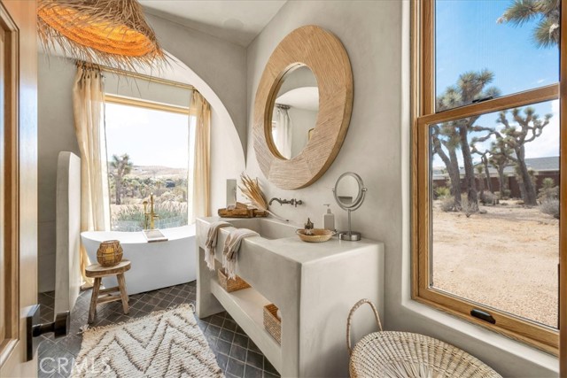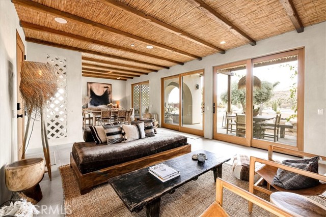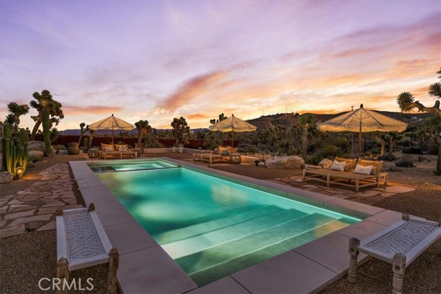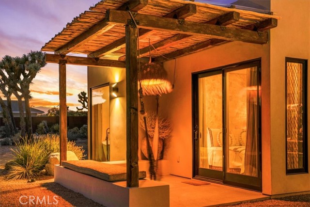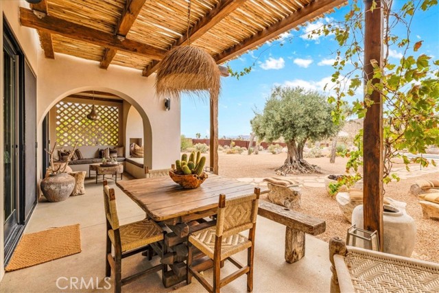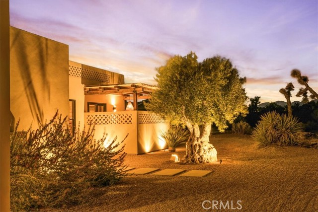 Step into your own private sanctuary in the heart of Yucca Valley—a stunning furnished Moroccan desert-inspired retreat that blends modern luxury with timeless design. This 2-bedroom, 2-bathroom architectural gem spans 1,363 square feet and sits on a serene 2.3-acre lot, offering total privacy and an unmatched desert living experience. From the moment you enter through the electric gate, you’re welcomed into a fully fenced oasis surrounded by native desert landscaping and curated stone walkways. Inside, you'll find sleek concrete floors, custom stone accents, built-ins, and thoughtfully designed living spaces that open seamlessly to the outdoors. The home features private patios, a tranquil inground heated salt water pool and spa, an outdoor fire pit, and shaded lounging areas—perfect for entertaining or unwinding under the stars. New modern architecture is complemented by mini splits for year-round comfort, while a carport adds function and more outdoor opportunities. This is more than just a home—it's a destination. Ideal as a luxury vacation getaway, high-end rental, or full-time desert retreat. Don’t miss the chance to own this truly one-of-a-kind property where style, privacy, and natural beauty meet.