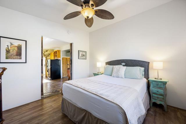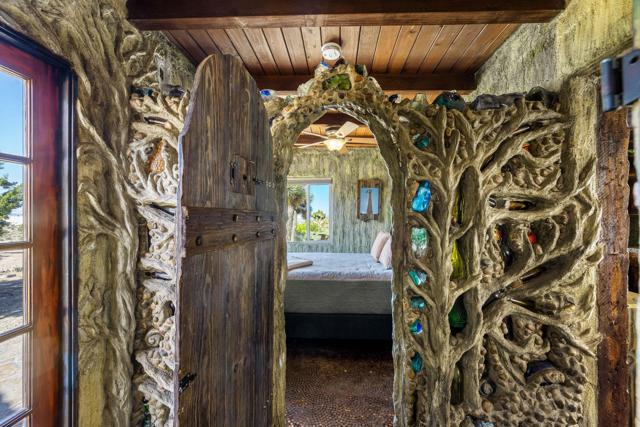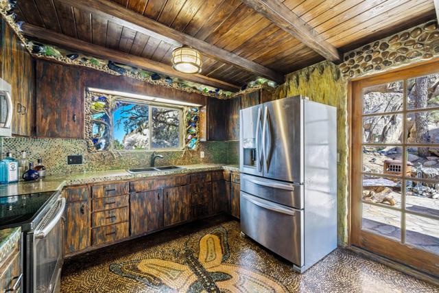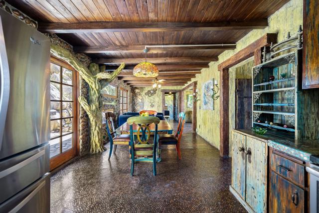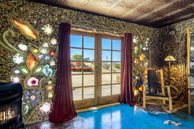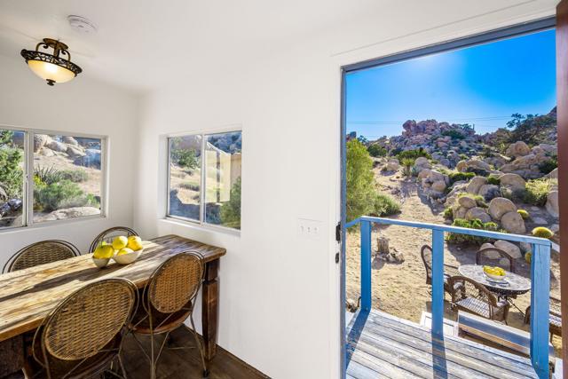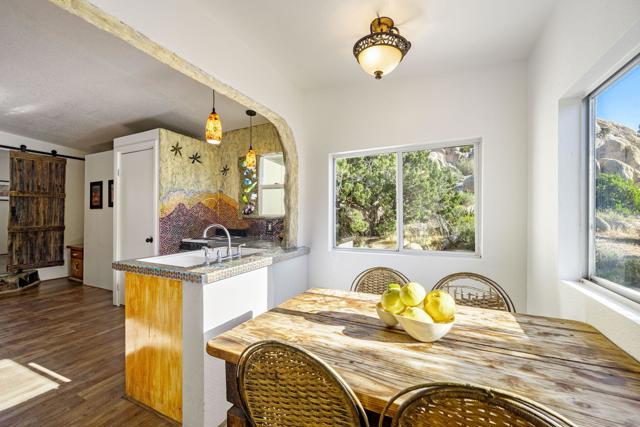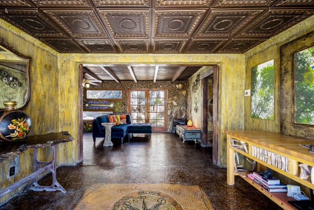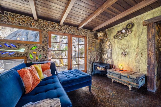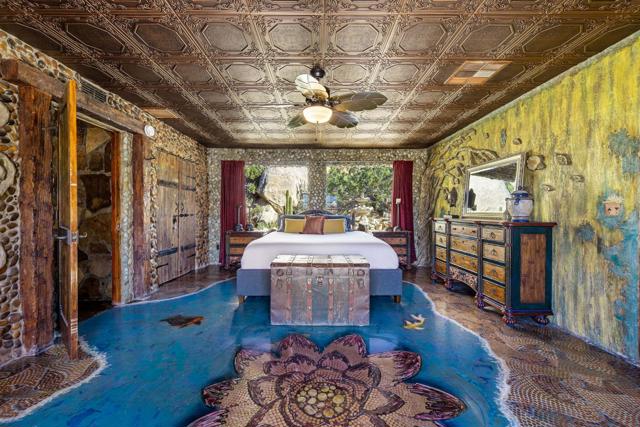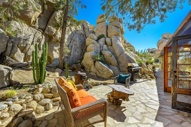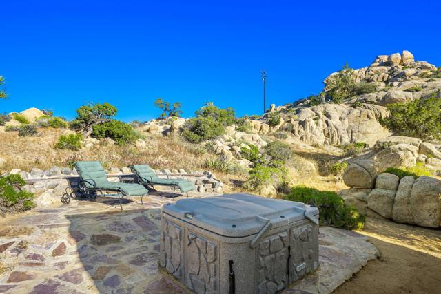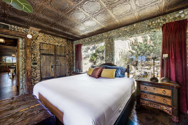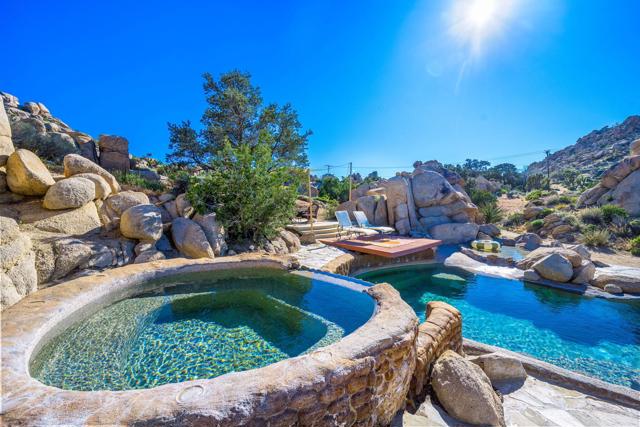 Spanning just over 7 acres, Dream Catcher Ranch is an extremely private oasis nestled in the inspiring, boulder-filled landscape that makes the Western Hills neighborhood so desirable. Enter the artist-designed main house to find sculptural textured walls with pops of colored glass, a penny tiled floor, ornate ceiling details and many more unique attributes. Take one of the meandering paths outside to find a massive, deep, and refreshing pool and spa, built right into the boulders, complete with barstools and a cascading waterfall. Relax and unwind on one of the many platforms around the pool and throughout the landscape to take in the spectacular views and desert tranquility. A second home, located above the pool, offers its own kitchen, bathroom, living room and guest accommodations and opens to a second, private hot tub. At the top of the property sits a deck with an incredible sweeping valley view. The landscape makes you feel like you're living within the Joshua Tree National Park, providing you with the feel of remote living with just a short drive to shopping and dining. The homes sit on a 5-acre lot, and an additional 2.06 acre adjoining lot is included in the sale to total just over 7 acres. Plans to build a stunning, contemporary home where the main house sits now are also available. This is a truly spectacular and unique offering.