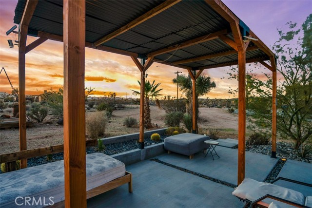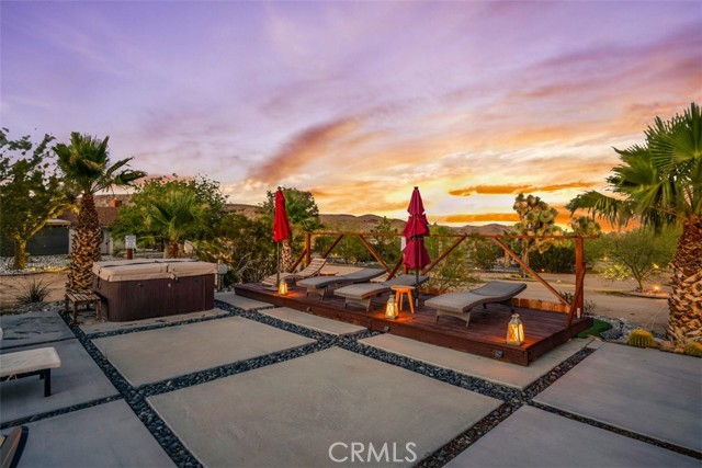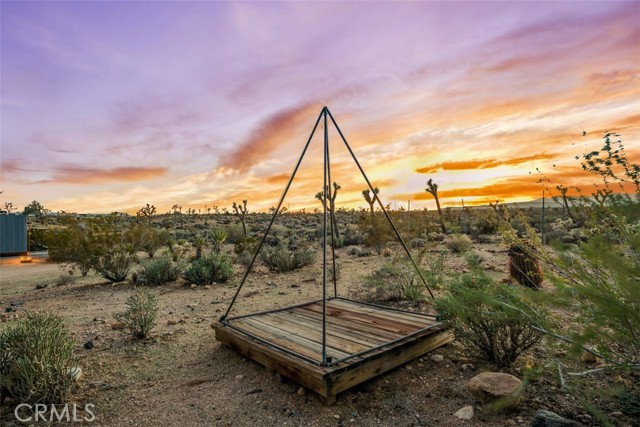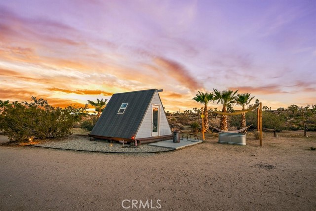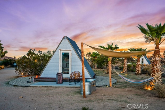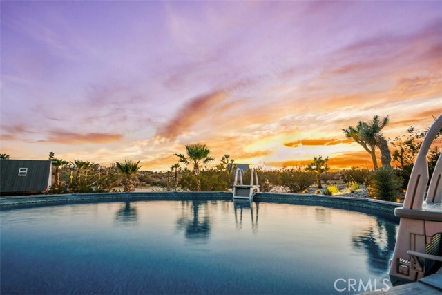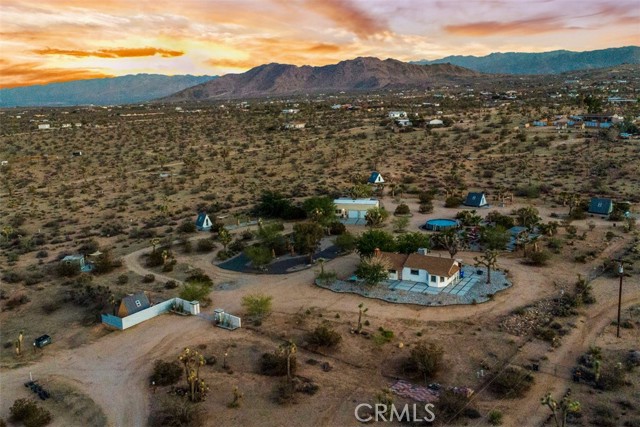 NEW PRICE! Seller is Motived to Sell!! Will provide property revenue upon request! Discover an extraordinary 5-acre income-generating desert retreat minutes from Joshua Tree National Park. This turnkey property combines luxury desert living with a successful boutique glamping business that grossed a significate amount in 2024 and was above the income of 2023. The contemporary main house features vaulted ceilings, natural wood beams, and a gourmet kitchen with expansive granite island. With nine bedrooms and stunning desert views through picture windows, it offers the perfect blend of comfort and natural beauty. A detached studio adds additional living space with its own kitchen, bedroom, bath, and attached garage. The property's hospitality infrastructure includes six framed structures, one the unique "Tin Can" and one studio apartment. With the right vision a buyer can rent out the house for additional income. Recent upgrades enhance the guest experience with a pool, spa retreat, bocce ball court, and renovated sun deck. Professional landscaping showcases mature palm trees and organically raised Joshua trees throughout the grounds. Multiple intimate spaces for relaxation dot the property, from poolside loungers to private daybeds. Guests can enjoy stunning sunrises, breathtaking sunsets, and stargazing under crystal-clear night skies. Recent improvements include renovated bathrooms, refurbished accommodations, and enhanced outdoor entertainment areas. This turnkey property presents a rare opportunity to own both a private desert sanctuary and a thriving hospitality business. Perfect for entrepreneurs seeking to capitalize on the booming Joshua Tree tourism market while enjoying the serenity of high desert living. The established business infrastructure and proven income history make this an exceptional investment opportunity.