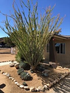 Reduced for quick sale. Move in Ready and well maintained 2 Bedroom 1 Bath home is nestled on the southside very desirable area of Yucca Valley. The neighborhood is close to the mountains and within seconds of Old Town Yucca Valley. The house has Heating/ Cooling Central Air. Center of Living room has a Cozy free standing fire place ambience for those cold winternight. The kitchen is open roomy with tile counter tops and plenty of cabinet space. Back yard has cinder block wall for privacy and small shed could convert to an ADU. The bathroom has tile counter top and has a walk in tub/shower. The 2 Car garage has a mini split to cool and can be used as a work shop. Horseshoe drive way can pull in RV and out with ease. Loans USDA ,VA . Bring in an offer. Please place this one on your show list. Dreams can come true ....this home could be your new home sweet home. Thank you for showing !!!
