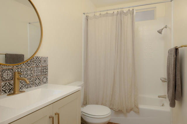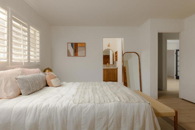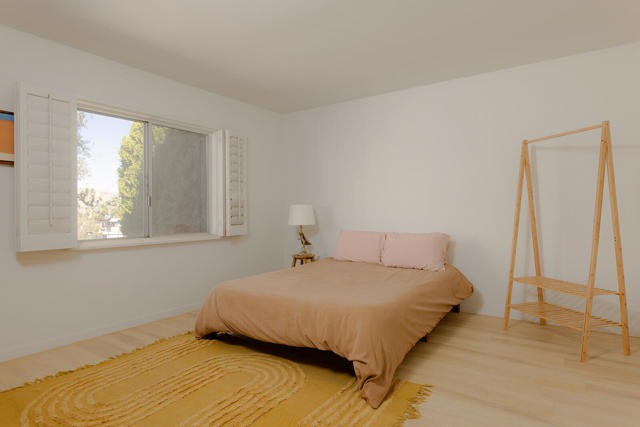 A thoughtful blend of modern upgrades and timeless desert beauty, this home has been reimagined for both comfort and inspiration. The kitchen has been fully remodeled with sleek new countertops, designer backsplash, custom shelving, fresh paint, and updated appliances, while each bathroom has been refreshed with glazed showers and stylish new vanities. Throughout the residence, new flooring creates a seamless flow--luxury vinyl in the main living spaces, sophisticated black tile in the dining room and studio, and carefully selected tile in the bathrooms. Popcorn ceilings have been removed and replaced with recessed lighting, and both the interior and exterior have been newly painted, lending the home a clean, contemporary elegance.Outdoors, multiple concrete patio spaces--including a newly expanded terrace on the upper tier of the yard--invite gatherings beneath the stars or quiet evenings enjoying the sunset framed by Joshua trees. Solar panels add efficiency, while the tranquil setting offers the rare gift of serenity: the hush of desert wildlife, skies bright with stars, and the peace of a safe, welcoming neighborhood.The interiors are bathed in natural light, with cozy yet generous proportions that balance intimacy and openness. A striking bonus studio adjoins the dining room, enclosed by sliding doors and crowned with a skylight, offering an ideal space for artists or creatives to draw inspiration from the surrounding landscape. The dining room and studio, accented by an elegant arched window and abundant glass doors, blur the lines between indoors and outdoors, making every moment feel connected to nature.While wonderfully private, the home is also just minutes from shopping, dining, and the local high school--an ideal combination of seclusion and convenience. Designed for those who value light, space, and serenity, this home is a true desert sanctuary.