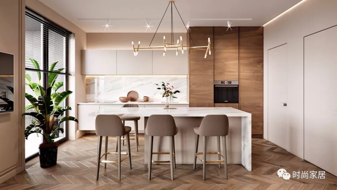 精致的吊灯 明亮的岛台