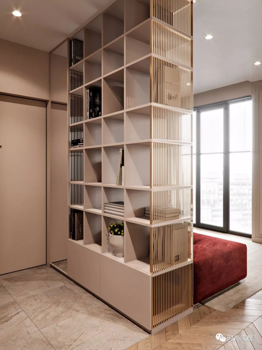 让到顶的玄关柜不至于太死板