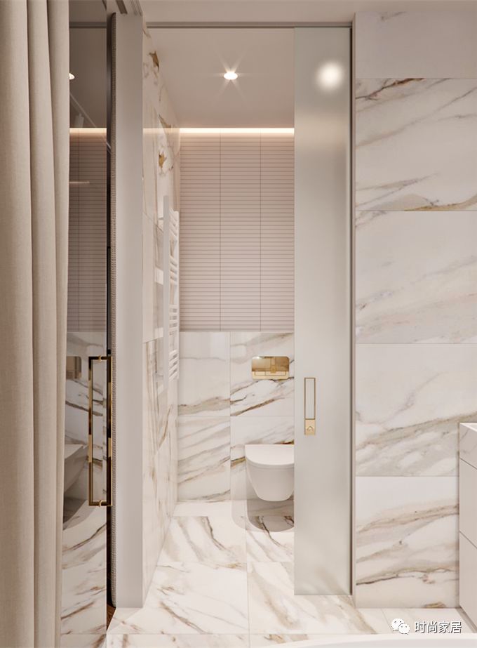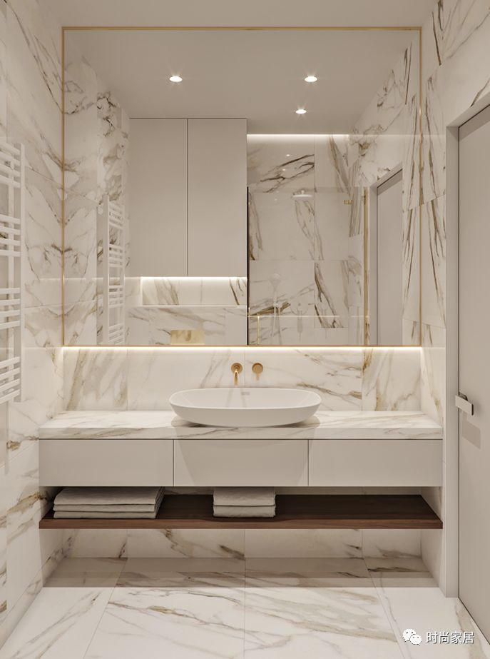 大理石墙面点缀上黄铜 质感满分