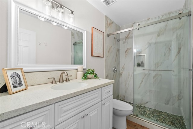 Don’t miss this opportunity to own a beautifully upgraded single-family home in one of Irvine’s most sought-after neighborhoods near the scenic Woodbridge North Lake! This spacious 3 bedrooms, 2.5 bathrooms 1,851 sq. ft. residence has been fully upgraded inside and out, offering both style and comfort. Throughout the home, you’ll find sleek LPV flooring, plenty of large windows that flood the space with natural light, and modern finishes designed for today’s lifestyle. The chef’s kitchen features stainless appliances, boasts crisp white shaker cabinets topped with elegant quartz countertops, while the updated bathrooms include a luxurious walk-in shower. Recessed lighting in every room. Enjoy a low-maintenance backyard featuring artificial turf and an aluminum patio cover—perfect for relaxing or entertaining with ease. The attached two-car garage is finished with a clean epoxy floor, and the home also features a brand-new roof for peace of mind.