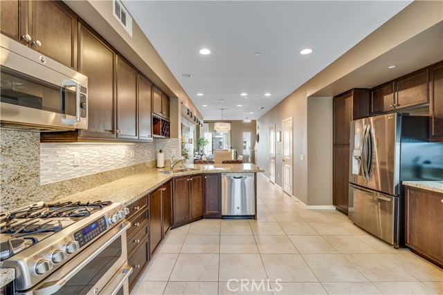 The chef’s gourmet kitchen steals the show with granite counters, full backsplash, double ovens, stainless steel appliances, and abundant storage — the perfect stage for entertaining or everyday cooking. Flow seamlessly to the private outdoor patio, ideal for morning coffee or evening relaxation under the palms.