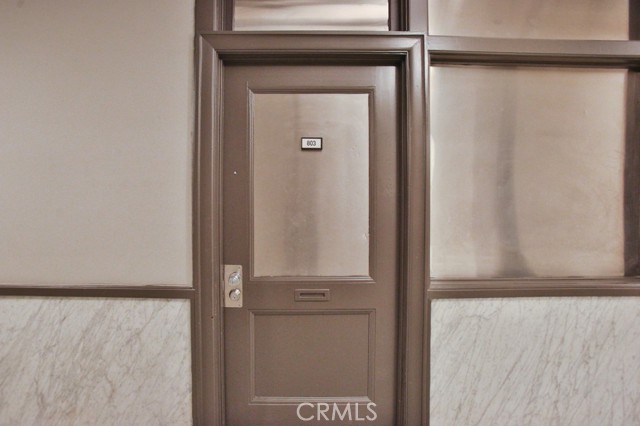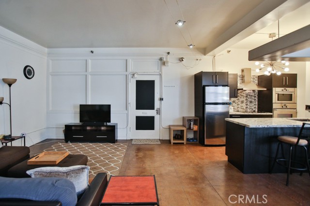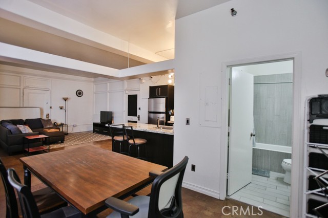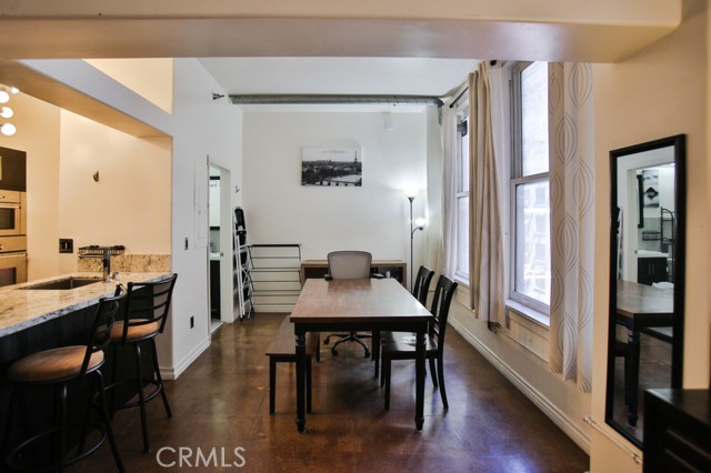 Welcome to Unit 803 at 215 W 7th Street, a stunning loft-style residence in the iconic Bartlett Building located in the heart of Downtown Los Angeles’ Historic Core. Originally built in 1911 and later converted into residential lofts, the building offers a unique blend of Beaux-Arts architecture and contemporary design. This beautifully remodeled 1-bedroom, 1-bathroom unit spans 707 square feet and features soaring 10-foot ceilings, oversized double-hung windows that flood the space with natural light, and polished concrete floors that enhance the home's industrial character. The fully enclosed bedroom offers privacy rarely found in downtown lofts, while a flexible den area makes a perfect space for a dining nook or home office. The open-concept kitchen is outfitted with granite countertops, stainless steel appliances, and abundant cabinet space, flowing seamlessly into the living area for easy entertaining. The spa-inspired bathroom includes sleek tile work, modern fixtures, and a deep soaking tub for a relaxing retreat. Additional conveniences include an in-unit washer and dryer and ample closet space throughout. The Bartlett Building is Mills Act-approved, offering significant property tax savings—up to 70%—for eligible owners. Residents also enjoy a host of amenities including 24-hour concierge and security, a rooftop sundeck with sweeping 360-degree city views, and optional on-site parking. Located in the bustling Jewelry District, you're just steps away from the Apple Store, Whole Foods, the Ace Hotel, the Orpheum Theatre, and some of the city's best restaurants and nightlife. Unit 803 is a rare opportunity to own a piece of LA history while enjoying all the modern comforts of urban living.