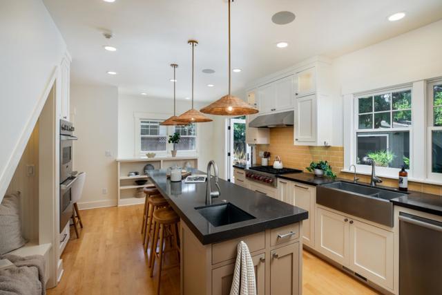In the heart of Naglee Park, San Jose's cherished, historic neighborhood known for its strong community and architectural reverence, this 1906 Craftsman offers nearly 2,000 sf of timeless charm. A classic front porch with cedar shingle siding and clinker brick columns welcomes you into a home full of character with a bespoke Inglenook and fireplace seating, craftsman wainscot and molding, hardwood floors, and vintage doors and hardware. Thoughtful updates provide modern comfort with remodeled kitchen, baths, and laundry. The chefs kitchen boasts Wolf range, Viking double ovens, Thermador refrigerator, Miele dishwasher, and a large island with prep sink and breakfast bar. The layout flows from living and dining rooms to a spacious redwood deck, picnic table, arbor with benches, and low-water native landscaping shaded by mature trees and wisteria. The primary suite includes a redesigned en-suite bath, walk-in closet, and built-in bookshelf with storage bench. Two additional bedrooms share a remodeled hall bath. A detached oversized two-car garage with plumbing rough-ins invites ADU conversion. Solar (NEM 2.0) with battery backup, new high-efficiency heat pump, warrantied roof, and indoor/outdoor speakers complete this seamless blend of historic charm and modern functionality.