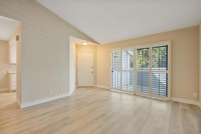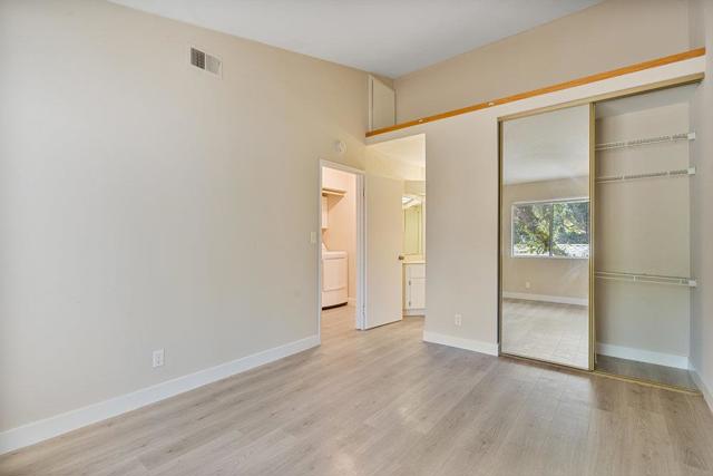 Welcome to this light-filled, move-in ready 2-bedroom, 2-bath, second-story condo in the sought-after gated New Horizons community. Fresh interior paint, stylish LVP flooring, central AC, elegant plantation shutters in the living room, vaulted ceilings, and a private patio surrounded by trees for added privacy create a modern yet serene living space. Enjoy the convenience of an in-unit full-size washer and dryer, and relax by the sparkling community pool on warm days. Perfectly situated for commuters, youre just a short walk to Tamien Caltrain and VTA Light Rail, and only 10 minutes from local shopping, including Whole Foods, Target, and Costco, as well as downtown Willow Glen and downtown San Jose. Easy access to Highways 87 and 280 makes this home the perfect blend of comfort, convenience, and location in the heart of San Jose.