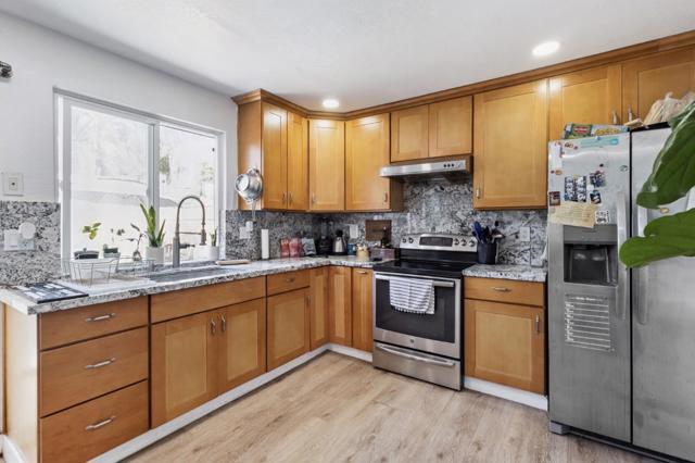 Welcome to this charming 2-bedroom, 2-bathroom home located in vibrant San Jose. With 1,196 sq ft of living space, this property offers a comfortable and functional layout. The kitchen is well-appointed, perfect for culinary enthusiasts, equipped with modern appliances and ample cabinetry. The separate family room provides a cozy space for relaxation and entertainment, while the dining area is ideal for family meals. The garage is converted into a workshop. Enjoy the warmth of the electric heating system and unwind in front of the fireplace during cooler evenings. The home features versatile flooring throughout, giving it a stylish and cohesive look. Although there is no garage, parking solutions can be explored nearby. Conveniently, laundry facilities are available within the home, enhancing everyday convenience. Located in the well-established San Jose Elementary School District, families will appreciate the proximity to educational institutions. This property merges comfort and practicality in one of California's iconic cities.