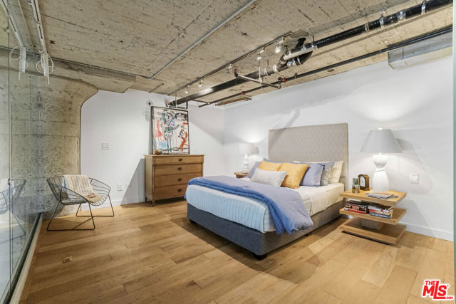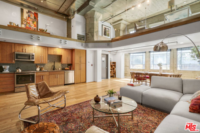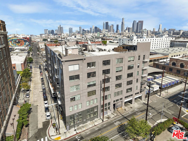 This is an opportunity to own in the iconic Toy Factory Lofts, located in the heart of Downtown LA's vibrant Arts District. Originally built in 1924, this 121-unit complex retains many of its original architectural details, offering a unique blend of character and modern design. This one-of-a-kind unit is the only residential residence situated on the ground level and features its own private entrance, making it an exceptional opportunity for live/work flexibility ideal for creatives, entrepreneurs, or anyone seeking a dynamic space to both live and work. Soaring ceilings and oversized windows fill the space with natural light, enhancing the open layout and inspiring productivity and creativity. The residence features a smartly designed one-bedroom layout with two well-appointed bathrooms and a walk-in closet. The open kitchen includes an induction oven and stove, dual convection oven and microwave unit, dishwasher, and refrigerator ideal for everyday cooking. Hardwood floors run throughout the space, and soundproof windows help maintain a quiet, peaceful atmosphere despite the lively urban surroundings. An in-unit washer and dryer provide added everyday convenience. Modern upgrades include a new HVAC system installed last year, a smart Nest thermostat, and smart lightbulbs in all recessed lighting making the home tech-forward and move-in ready. Step outside to enjoy the building's impressive outdoor amenities, including a communal pool, hot tub, barbecue area, garden, and fire pit. From the rooftop common areas, residents can enjoy panoramic views of LA's skyline, perfect for relaxing or entertaining. A convenience store is located on the ground level for daily essentials, and Hank's Organic Supermarket & Grill is literally just across the street, offering easy access to fresh groceries and casual dining. EV charging is readily available throughout the garage. Security and peace of mind are top priorities, with an electric gate, security patrol, video surveillance, and a full-time doorman. The Arts District Business Improvement Team also actively patrols the neighborhood by bike and truck, helping to keep the area clean and secure. Located along the prime strip of the Arts District, you're surrounded by creative energy, top-tier dining, art galleries, and culture. Parking is a breeze with assigned garage spaces and on-site options. Fitness enthusiasts will appreciate the on-site gym complete with machines, weights, showers, and a Pilates studio. Experience unparalleled urban living with a full suite of luxuries and conveniences, all in one of LA's most dynamic and desirable neighborhoods.
